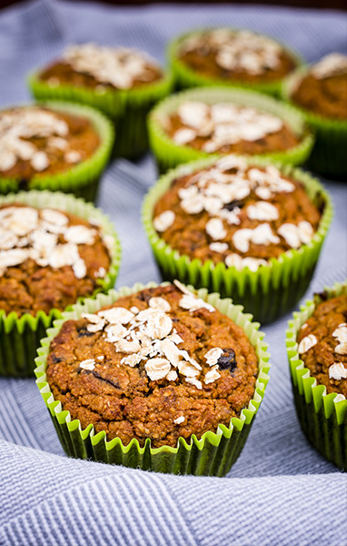Muffins: Stir oat bran, ground almonds, baking powder and salt together in a large mixing bowl.